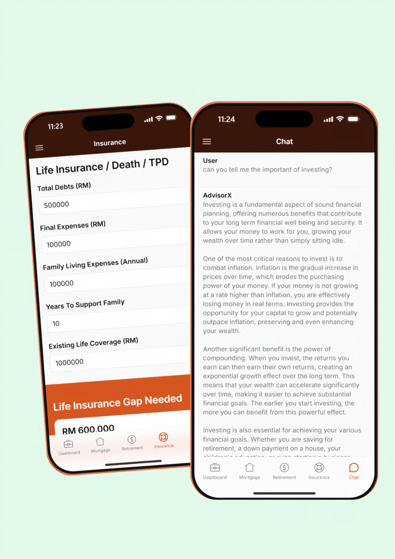 AdvisorX by AWFP is Malaysia’s most powerful free financial planning app — calculate your mortgage, retirement, insurance, and investments before you ever sit across from an advisor.